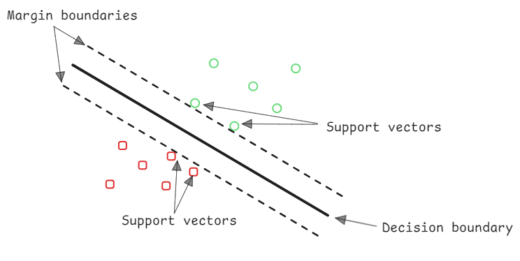 For 2 features/2 dimensions, it is: , which may be rearranged into a linear line.