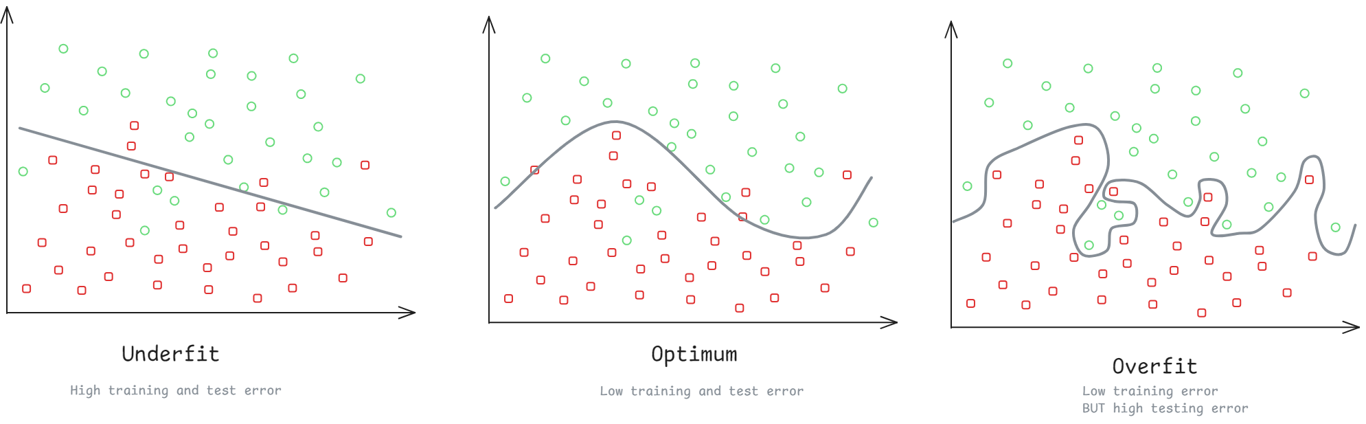 - Underfit models experience high bias: inaccurate results for both training data and test set.